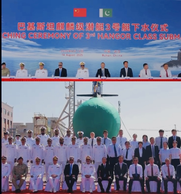 اسلام آباد، 15 اگست 2025 (کامران راجہ): تیسری ہنگور کلاس آبدوز پی این ایس ایم مانگرو کی لانچنگ کی تقریب ووہان چین میں ووچانگ شپ بلڈنگ انڈسٹری گروپ کمپنی لمیٹڈ شوانگلیو بیس میں منعقد ہوئی۔ ڈپٹی چیف آف نیول اسٹاف پراجیکٹ-2، وائس ایڈمرل عبد الصمد اس موقع پر مہمان خصوصی تھے۔