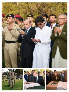 Funeral prayers of Brigadier Mustafa Kamal Barki who embraced martyrdom during an encounter with hardcore terrorists in Angoor Adda, South Waziristan yesterday was performed at Race Course Rawalpindi today. Honourable President Islamic Republic of Pakistan Dr Arif Alvi, Honourable Prime Minister Mian Muhammad Shehbaz Sharif, Chairman Joint Chiefs of Staff Committee (CJCSC) General Sahir Shamshad Mirza, Chief of Army Staff (COAS) General Syed Asim Munir, DG Inter Services Iintelligence (ISI) Lieutenant General Nadeem Ahmed Anjum and large number of serving and retired military officers & soldiers, government officials, Parliamentarians and public attended the funeral. The officer was buried at Army Graveyard with full military honours in acknowledgment of his services to the nation.