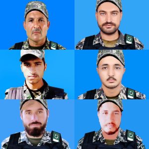 However, during intense exchange of fire, six brave soldiers having fought gallantly, embraced shahadat. Details of shuhada are: Havaldar Saleem Khan (age 36 years, resident of District Tank), Naik Javed lqbal (age 37 years, resident of District Kohat), Sepoy Nazir Khan (age 26 years, resident of District Bannu), Sepoy Hazrat Bilal (age 25 years, resident of District Mardan), Sepoy Syed Rajab Hussain (age 22 years, resident of District Orakzai) and Sepoy Bismillah Jan (age 22 years, resident of District Khyber).