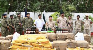 In an intelligence based joint counter-narcotics operation, Pakistan Navy and ANF seized 9.5 Tons of narcos and over 10 thousand bottles of Liquor at sea. The apprehended drugs were stowed in hidden compartments of a fishing boat that was successfully intercepted by a PN Ship. The estimated value of seized narcos is US $ 112 million in international market. The seized drugs were subsequently handed over to Anti-Narcotics Force for further legal proceedings.