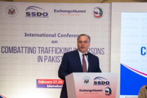Thanking the organizers, Sustainable Social Development Organization (SSDO) and the Pakistan-U.S. Alumni Network (PUAN), for their work in coordinating the two-conference, Deputy Chief of the U.S. Mission to Pakistan Andrew Schofer added, “The exchange of ideas and coordination amongst all players is a critical part of addressing the issue of trafficking in persons.” Scholars and anti-human trafficking experts from both the U.S. and Pakistan attended the conference, which included plenary sessions special sessions, and five working groups to discuss expected roles of a broad range of stakeholders to counter TIP – including parliamentarians, law enforcement, judiciary and prosecution, civil society, academia, and media.