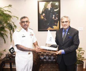 The meeting discussed the prevailing economic and security situation of the country. The Finance Minister commended the efforts of Pakistan Navy in protecting the country’s sea frontiers and maritime interests of Pakistan. The Finance Minister further expressed confidence on the role of Pakistan Navy in safeguarding the maritime boundaries and extended the government’s full support to Pakistan Navy.